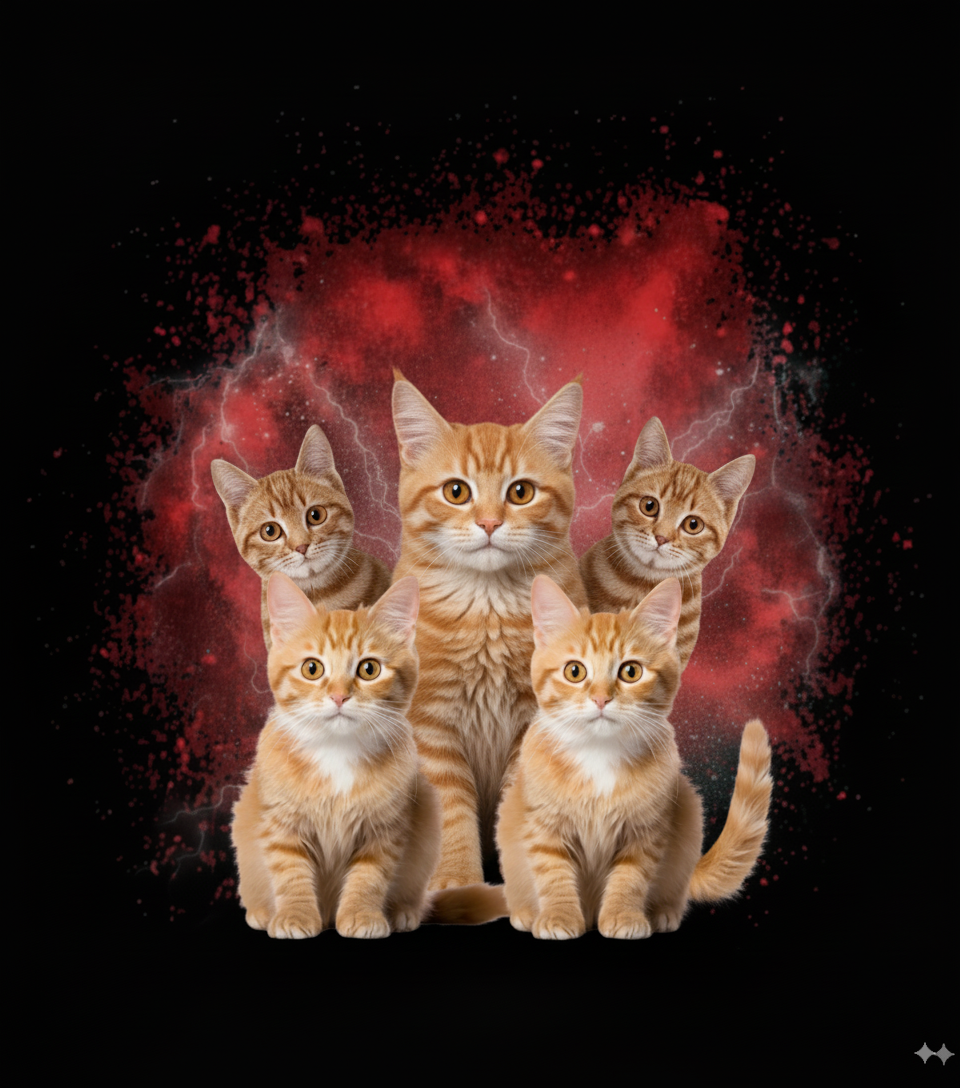 Four cosmic cats. One bold tee. Made for those who love felines and a little flair.